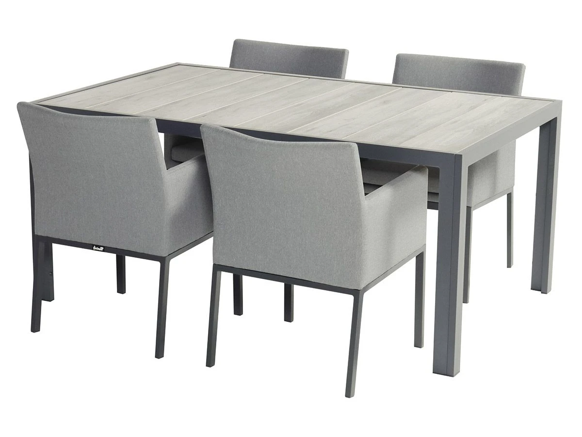 De Catania heeft een zachte grijze kleur waardoor je de stoel met veel verschillende tafels kunt combineren! De Catania heeft een aluminium frame met een textileen zitting. De leuningen en het kussen zijn gemaakt van weerbestendig Easy-Dry-Foam, dit betekent dat een kleine regenbui de kwaliteit niet laat zakken.