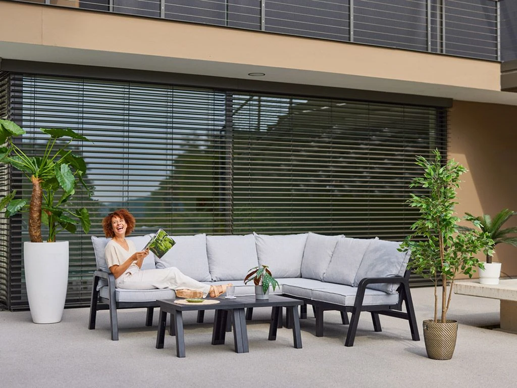De set is bestand tegen uiteenlopende weersinvloeden, kleurvast en eenvoudig schoon te maken.