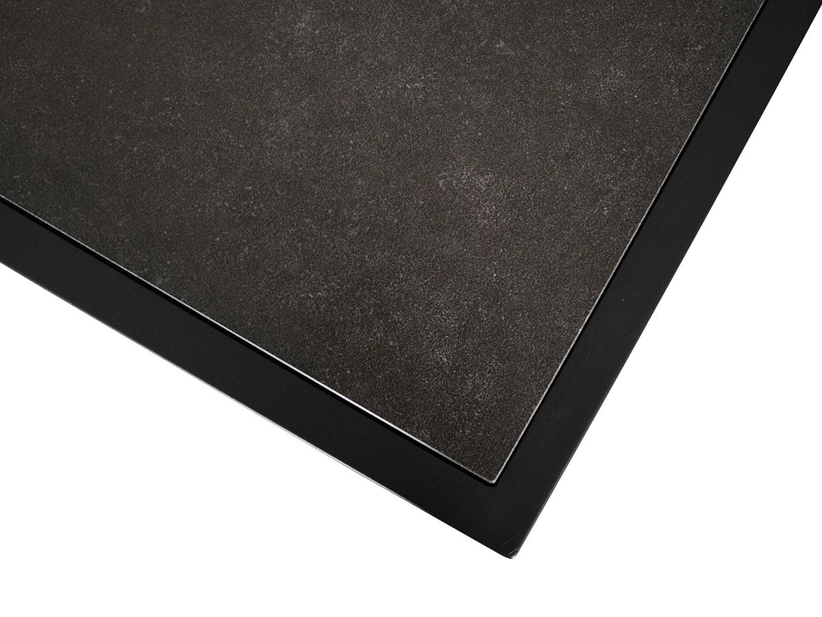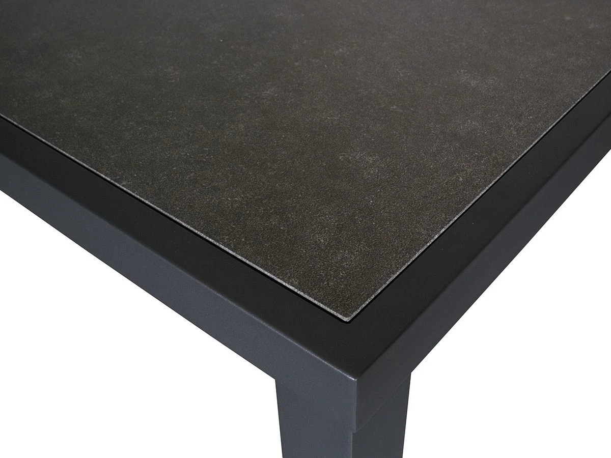 De tafel heeft aluminium onderstel met daarop een tafelblad van veiligheidsglas met een keramische coating. Beide onderhoudsarme materialen. Ook zijn deze materialen zeer bestendig tegen uiteenlopende weersinvloeden. Hierdoor kan de tafel het hele jaar buiten blijven staan en is schoonmaken super eenvoudig! Doordat het blad gecoat is, raden we sterk af om het blad af te dekken en laat geen decoratie langdurig op dezelfde plek staan.